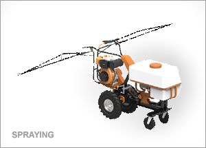 The Machine can be used for Land Preparation, Ridge and Bund formation, Seeding, Watering, Intercrop weeding, Spraying, Harvesting , Haulage and levelling, covering all types of farm work making it Farm-in-one machine without the worry of dependence on labor.