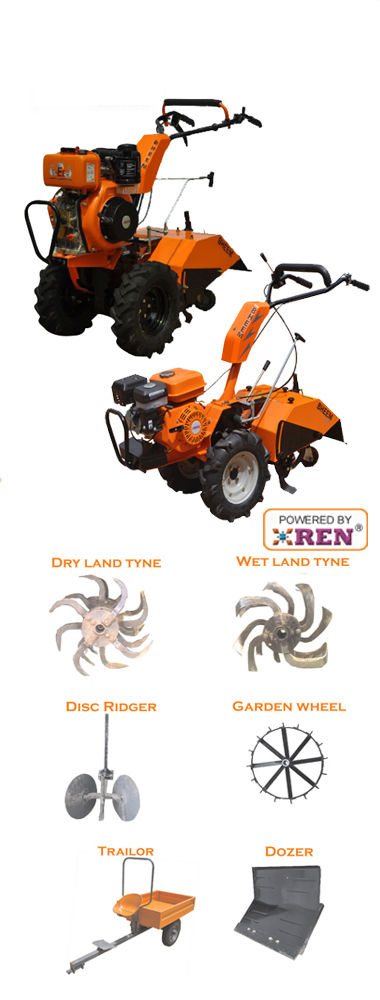 BHEEM Excel Weeder BMT 600Petrol & Diesel is a versatile Multipurpose Mini Weeder launched to cater the needs of Small and Marginal Farmers. BHEEM Excel Weeders can be used by farmers from land preparation to harvesting by using suitable attachments all most covering all the farming work. BHEEM Excel Weeders is self propelled machine with 2 forward and 1 reverse gear with a separate gear for Rotovator the machine is also equippedwith cast iron oil lubricated gear box with multi plate clutch powered by a powerful and reliable REN 305cc Diesel engine and Ren 196cc Petrol Engine with 3 - stage oil bath filter to suit the rugged farming conditions in India.