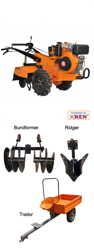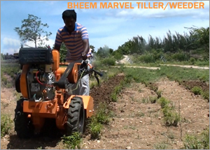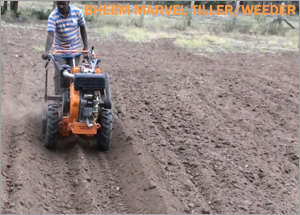 BHEEM Marvel Weeder is a compact Self Propelled machine powered by 7.9 hp engine diesel engine, with separate gear for propulsion and rotovator. It is a multipurpose machine with six forward and 2 reverse gear and a seprate gear for rotovator.This is a unique machine with 2.25ft center drive rotovator and with 16 tynes. It fitted with a high speed rotovator for best soil pulverziation . The high power to weight ratio along with the compactness makes it a more versaitile machine. It can be used for wet land puddling Dry land prepration Intercrop weeding, Ridiging, Bund Forming , Haulage etc..