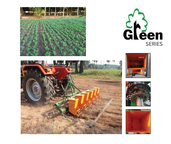 This planter is suitable for sowing of bold seeds like groundnut, maize, Kabuli gram, etc. and very small seeds (mustard, sorghum, etc.) size seeds which otherwise cannot be satisfactorily sown by conventional seed drills. The planter is also suitable for sowing of intercrops. Tractor mounted 6‐row inclined plate planter is a multi‐crop planter for planting of both, bold and small seeds which cannot be sown satisfactorily by convention seed drills. The Planter consists of a frame with tool bar, modular seed boxes; furrow openers and ground drive wheel system. It has six modular design seed boxes with independent inclined plate type seed metering mechanism. Seed plates for sowing different seeds can be selected and easily changed.